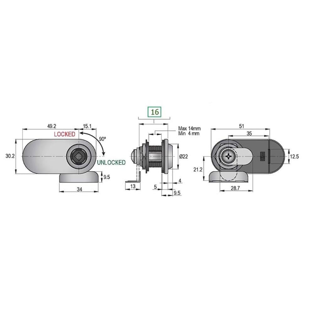 قفل اثاث زجاج درفتين 16 ملي