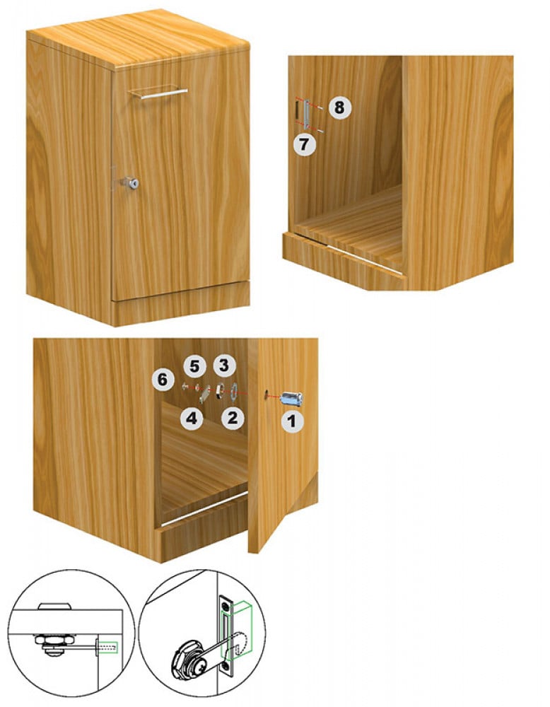 قفل اثاث خشب لسان مفتوح لون فضي مفتاح مخرم