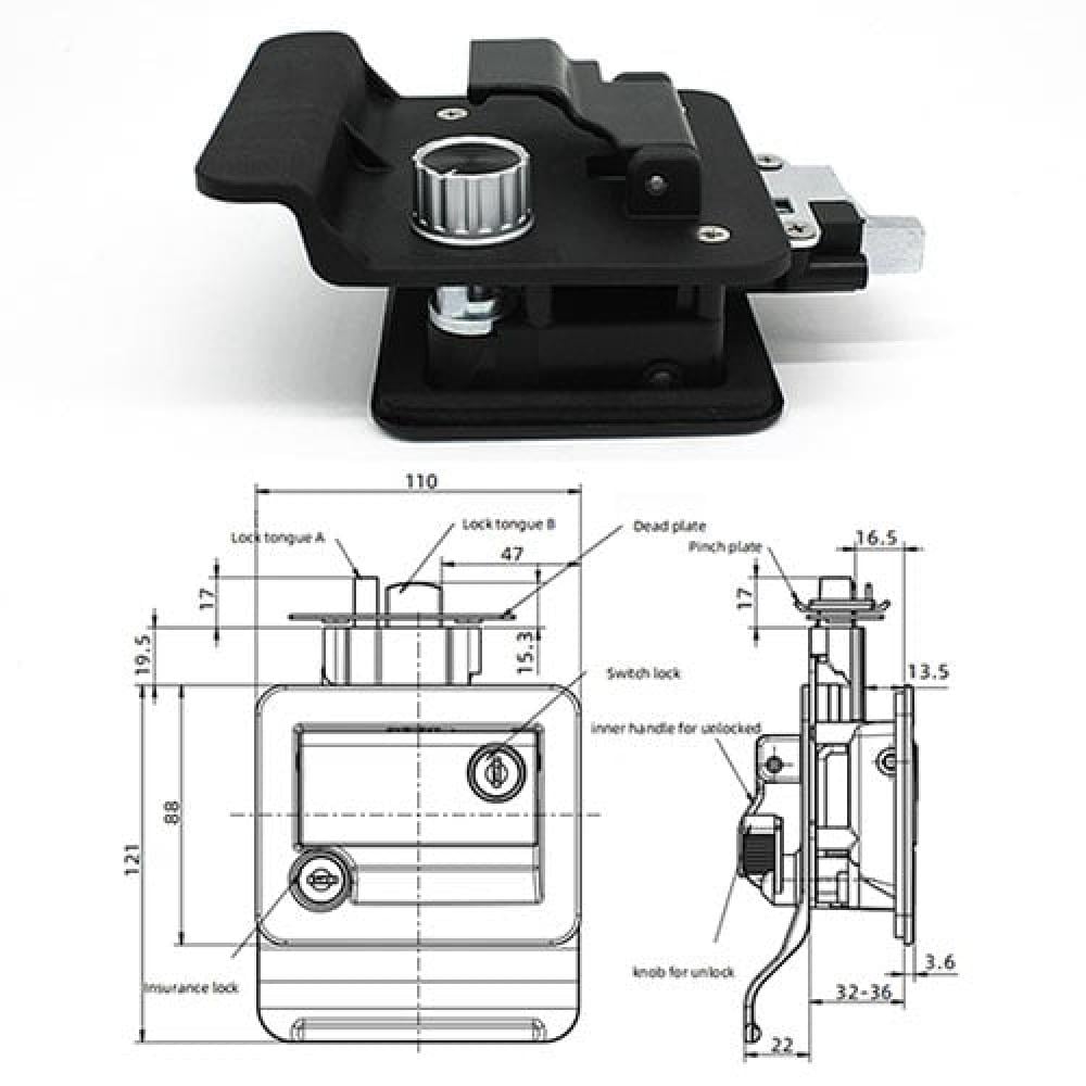 يأتي مع مخطط للأبعاد لتسهيل التثبيت، ويتوافق مع أغلب أبواب الكرفانات والمقطورات.
