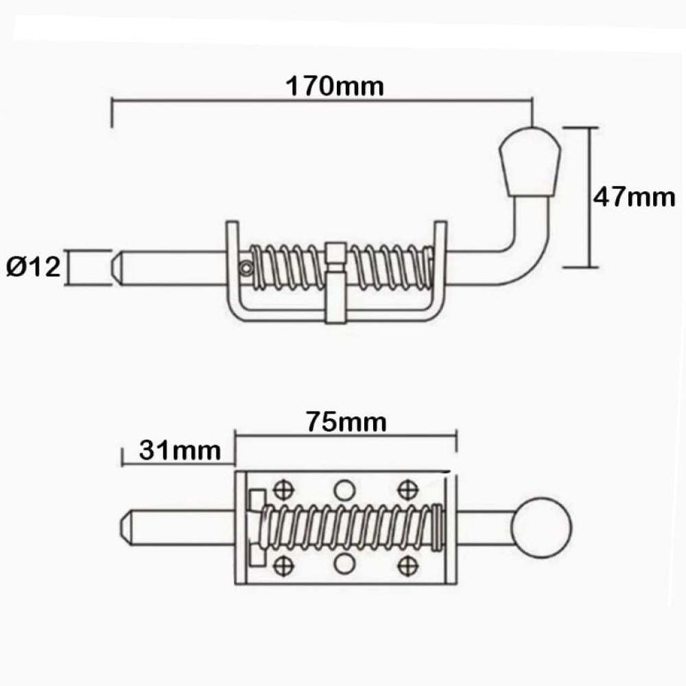 مزلاج زنبركي معدني بطول 170 ملم، مصمم لضمان الحماية القصوى والتحكم الدقيق في الإغلاق والتثبيت. يتميز بتصميم قوي وعملي يجعله مثاليًا للاستخدام على الأبواب، البوابات، الصناديق، والمعدات الصناعية. يتوفر بلونين: الأسود الأنيق والفضي اللامع.