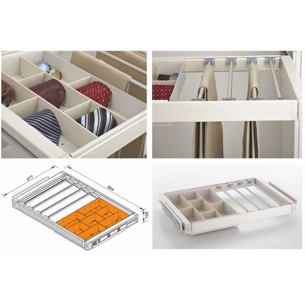 يتميز هذا المنتج بتصميم أنيق وعملي يجمع بين منظم الأدراج وحامل البناطيل في وحدة واحدة، مما يجعله الحل المثالي لتنظيم خزانة الملابس.