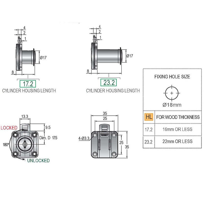 مقاس القطر Ø17 يستخدم على فتحة مقاس Ø18 ملي