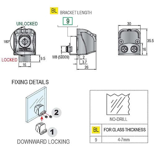 قفل اثاث زجاج درفة واحدة إتجاه سفلي