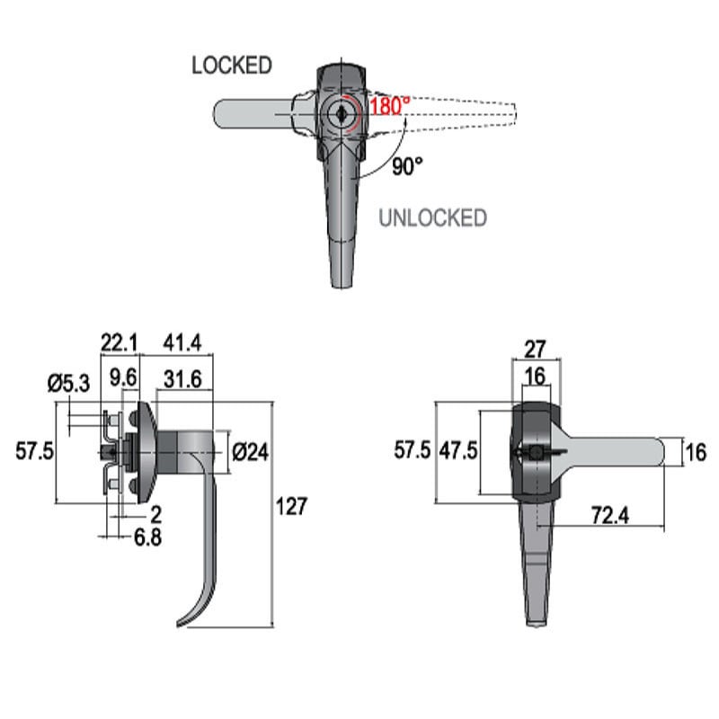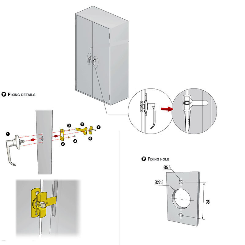 قفل خزانة حديديستخدم على فتحة مقاس Ø22.5 مليمناسب لسماكة الحديد :0.6-0.9 ملي (بعد الطلاء)صنع في تايلند