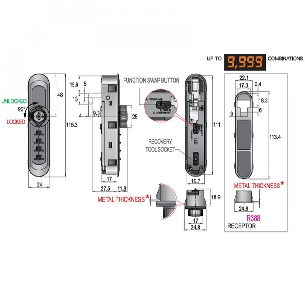 قفل رقمي للخزانة الحديد للدرف السحاب