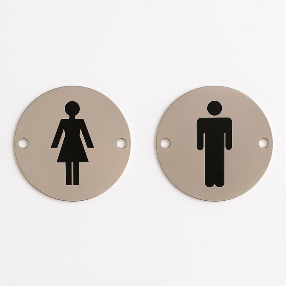 اجعل التوجيه داخل منشأتك أكثر تنظيمًا وجاذبية مع لوحات إرشادية دائرية مخصصة للرجال والنساء، مصنوعة من ستانلس ستيل مقاوم للصدأ، بتصميم بسيط وواضح يناسب جميع أنواع المساحات.