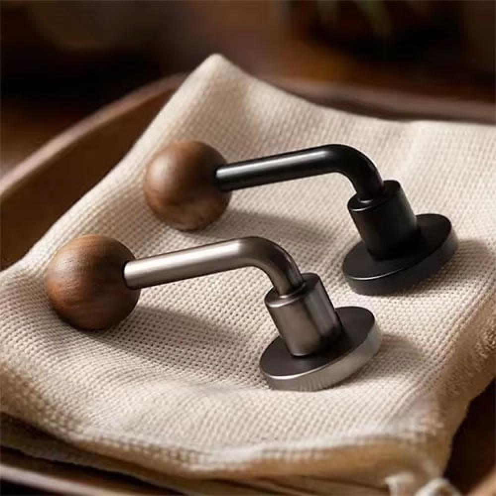 - تصميم فريد وأنيق – مقبض دائري مبتكر يجمع بين المعدن القوي والخشب الطبيعي الفاخر.