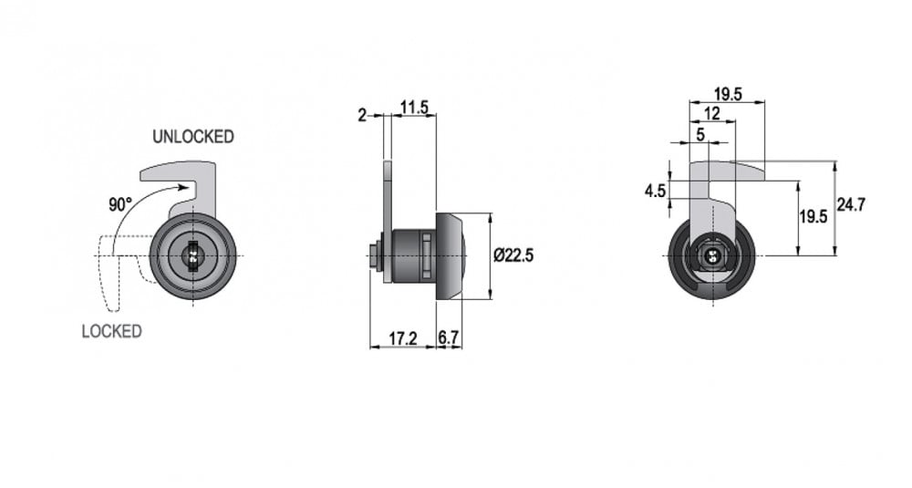 قفل صندوق بريد مفتاح عادي 11 ملي 90 درجة