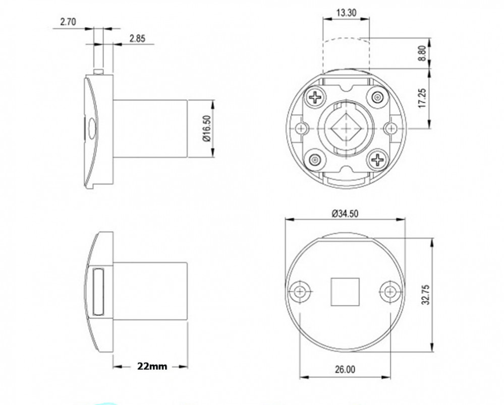 قفل اثاث خشب دائري لون فضي القلب 22 ملي والقطر 16.5 ملي
