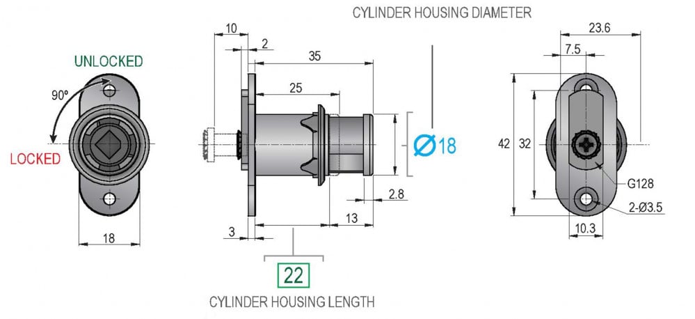 قفل اثاث خشب ضغطه وفرة لون اسود طول القلب 22 ملي والقطر 18 ملي 90درجة