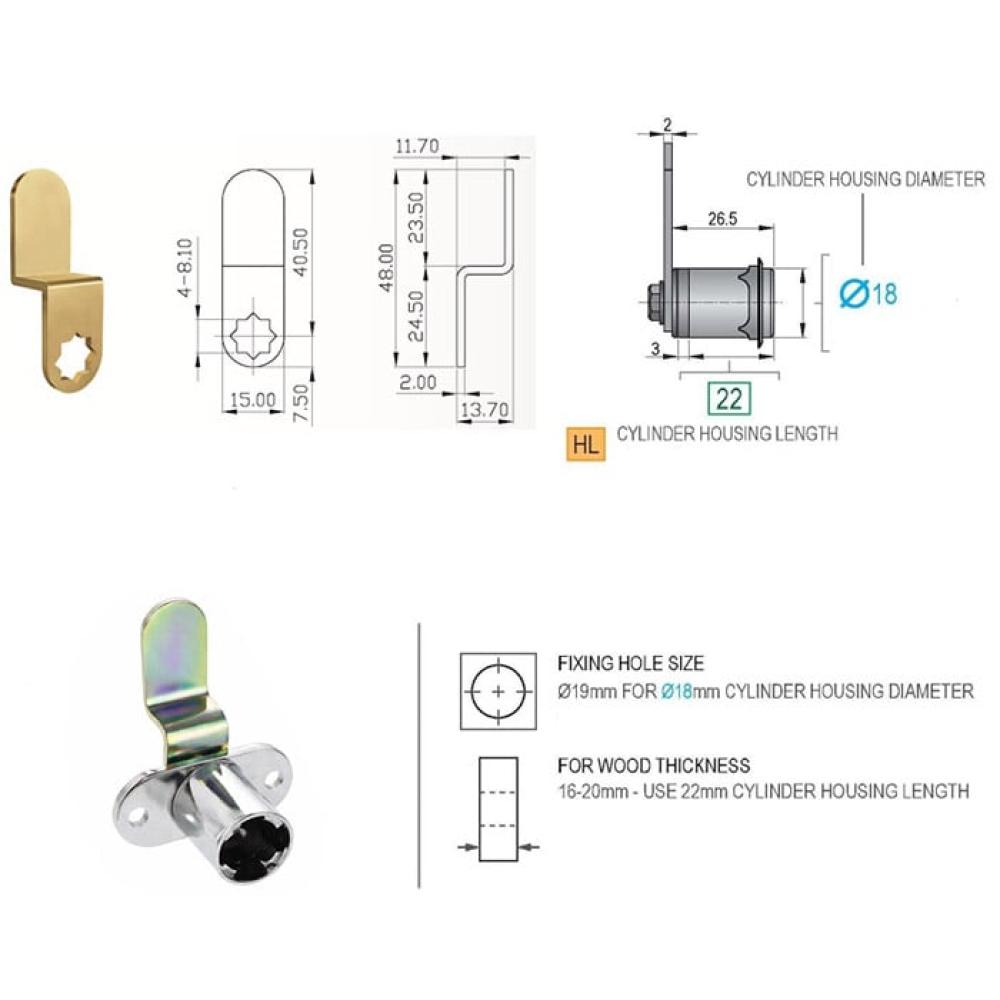 - Lock body length: 22 mm