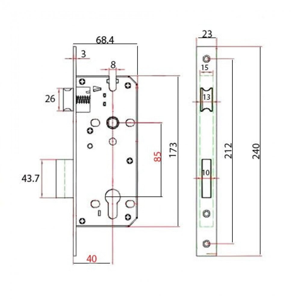Door mortise lock 40x85mm