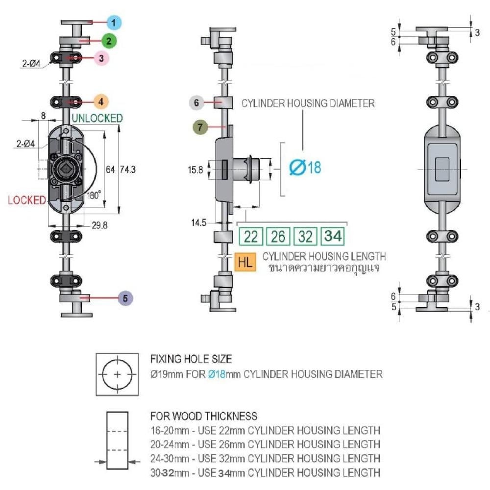 - Available Cylinder Lengths: 22 mm, 26 mm, 32 mm, 34 mm