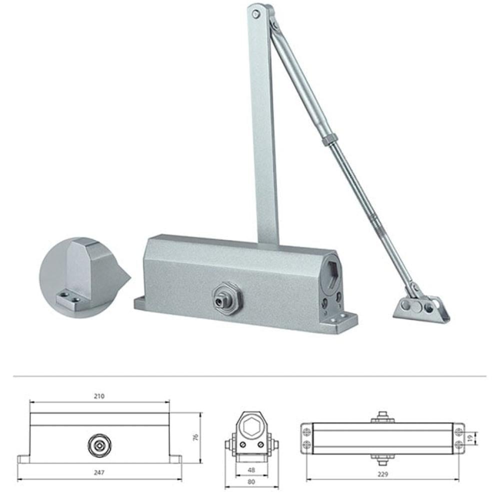 High-capacity hydraulic door closer with a load range of 100–150 kg, suitable for large and heavy doors in both internal and external entrances. Delivers smooth, silent closing with strong stability, making it ideal for intensive use in commercial buildings and public facilities.