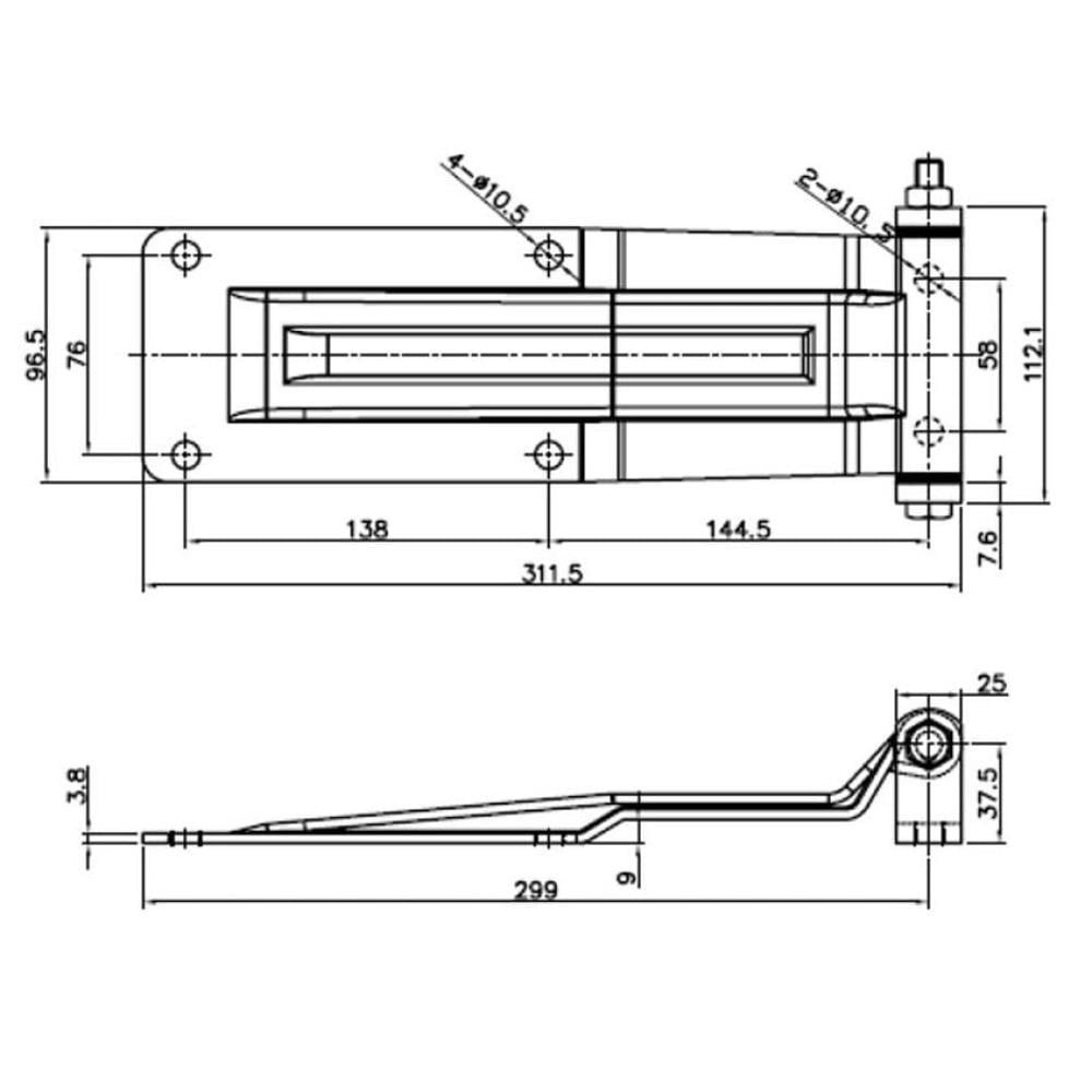 A high-quality metal hinge with a long curved design, engineered to provide maximum stability and support for large doors, covers, and heavy storage boxes. It ensures balanced load distribution with smooth and safe movement, making it ideal for industrial applications that require high load capacity.