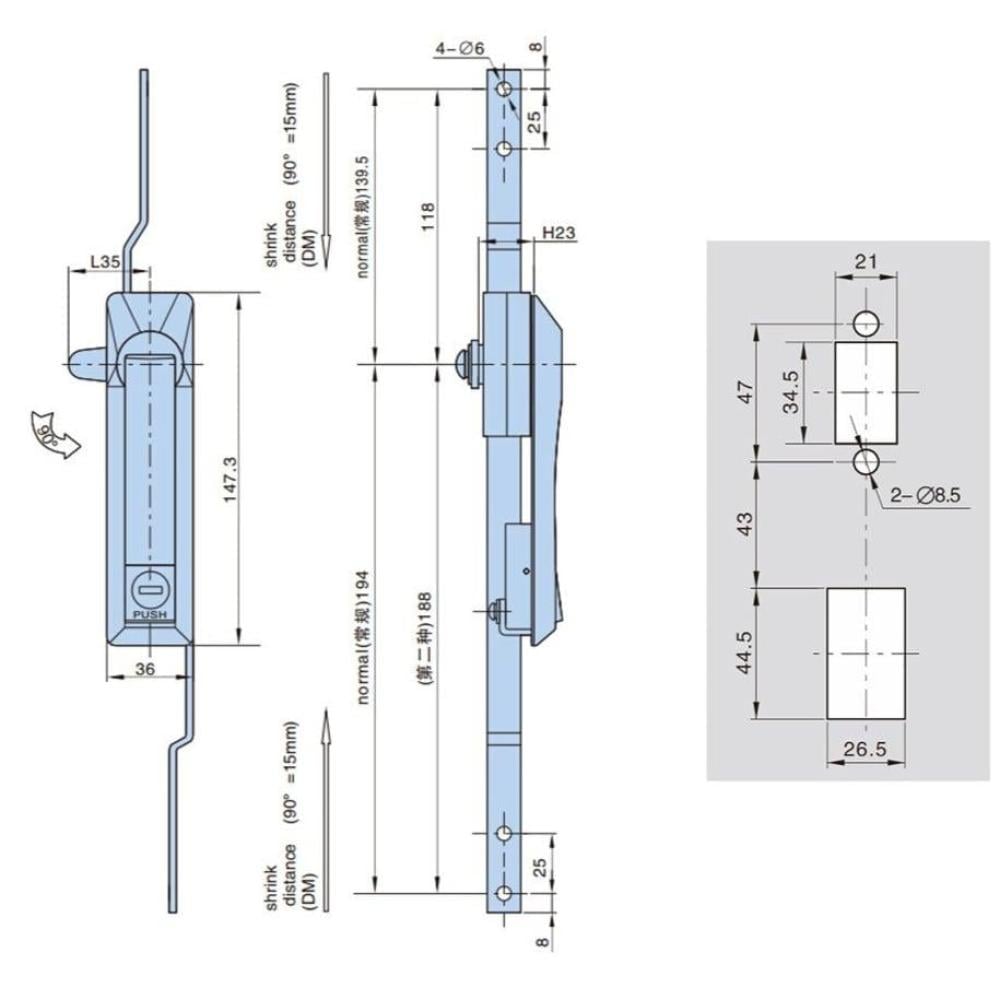 A long handle lock designed to provide high-level security for industrial doors, container doors, and large metal cabinets. It features an intelligent push locking mechanism that ensures firm closure and optimal stability with easy operation.