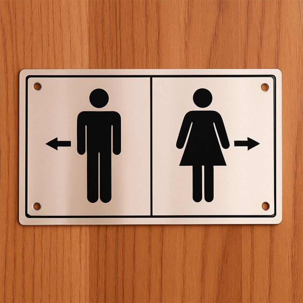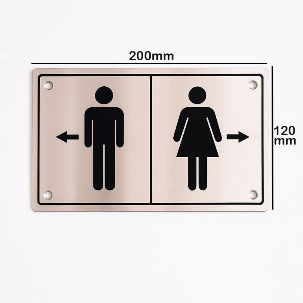 Guide visitors with ease using this dual restroom sign for Men and Women, crafted from high-quality stainless steel. Its sleek rectangular layout and directional arrows provide instant clarity, making it ideal for busy public spaces.