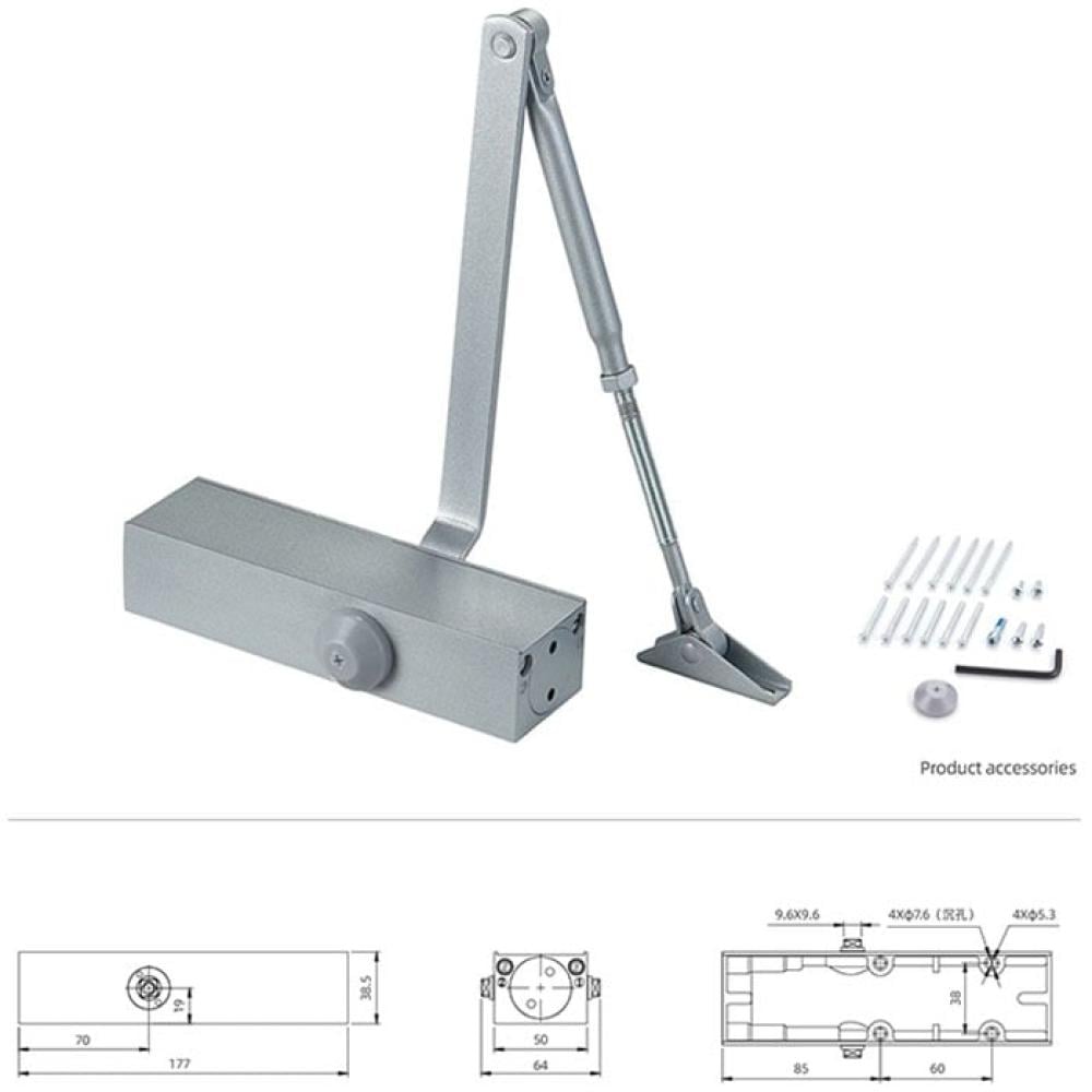 📌 Surface Mounted Door Closer – Load Capacity 40–60 kg with Foldable Arm