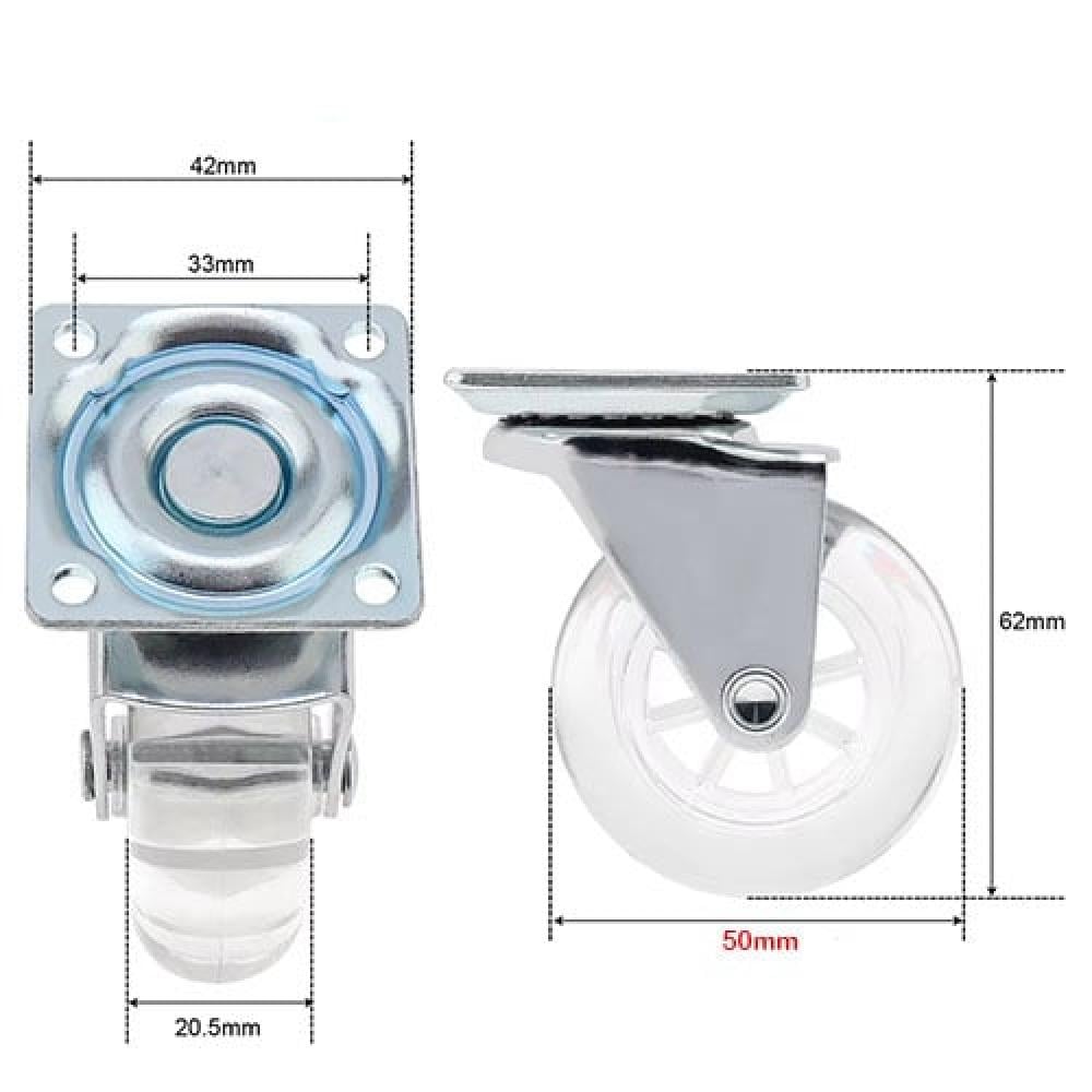- 💪 High-Quality Material: Transparent polyurethane (PU) wheel, scratch-resistant, with a durable metal base for maximum longevity.